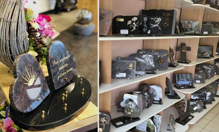 Aussi le choix est vaste en matière d'accessoires : cela va de la stèle à la composition florale en passant par une multitude de plaques, d'inscriptions, …