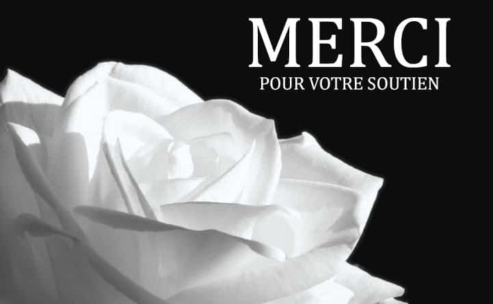 - «Nous vous disons du fond du cœur Merci. Par vos mots réconfortants, par votre présence, une pensée, une fleur ou une prière, avez voulu témoigner votre sympathie lors du décès de .... »